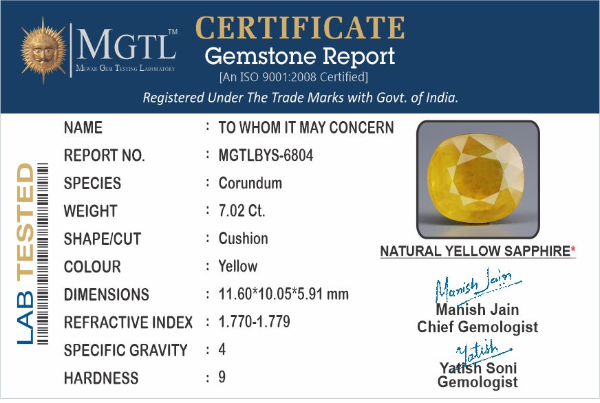 | Gemstone | Yellow Sapphire (Pukhraj) |