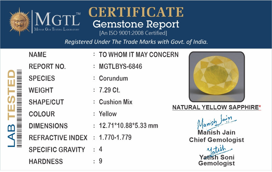 | Gemstone | Yellow Sapphire (Pukhraj) |