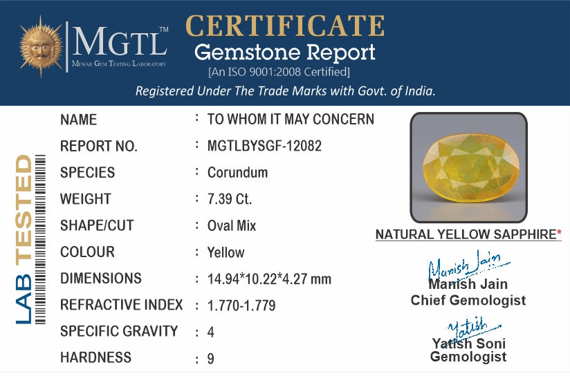 | Gemstone | Yellow Sapphire (Pukhraj) |