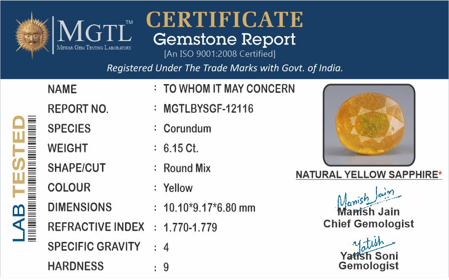 | Gemstone | Yellow Sapphire (Pukhraj) |