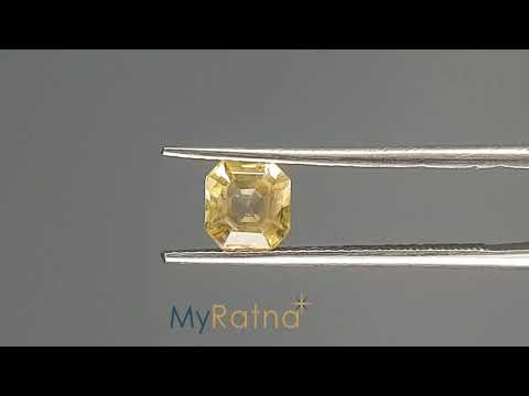 Natural 1.08 carat Ceylon yellow sapphire gemstone. This yellow Pukhraj shows a bright yellow tone, good clarity, and a neatly faceted octagon shape with dimensions - 5.73 x 5.34 x 3.49 mm. Original 1.19 ratti Sri Lankan Pukhraj stone is from the Corundum family, weighs about 0.22 grams, and is completely natural without any treatments. IGITL certified, it's ideal for astrological use and trusted by gemstone lovers. Known to bring luck, wisdom, and positive energy. Pukhraj stone price for this piece is just ₹9,828.