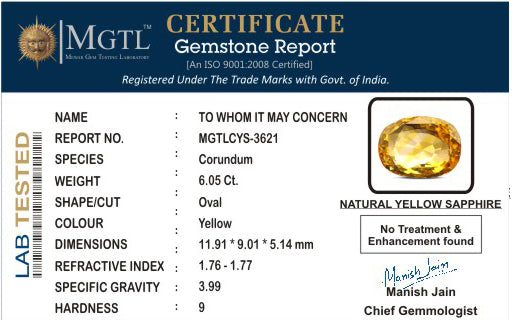 | Gemstone | Yellow Sapphire (Pukhraj) |