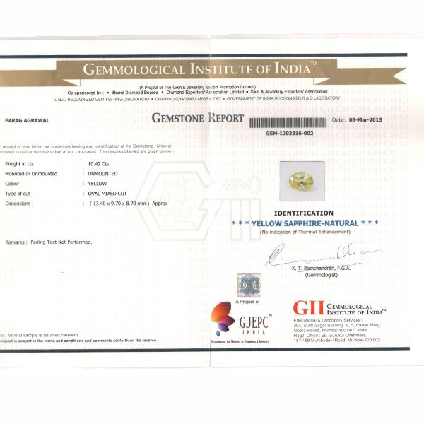 | Gemstone | Yellow Sapphire (Pukhraj) |