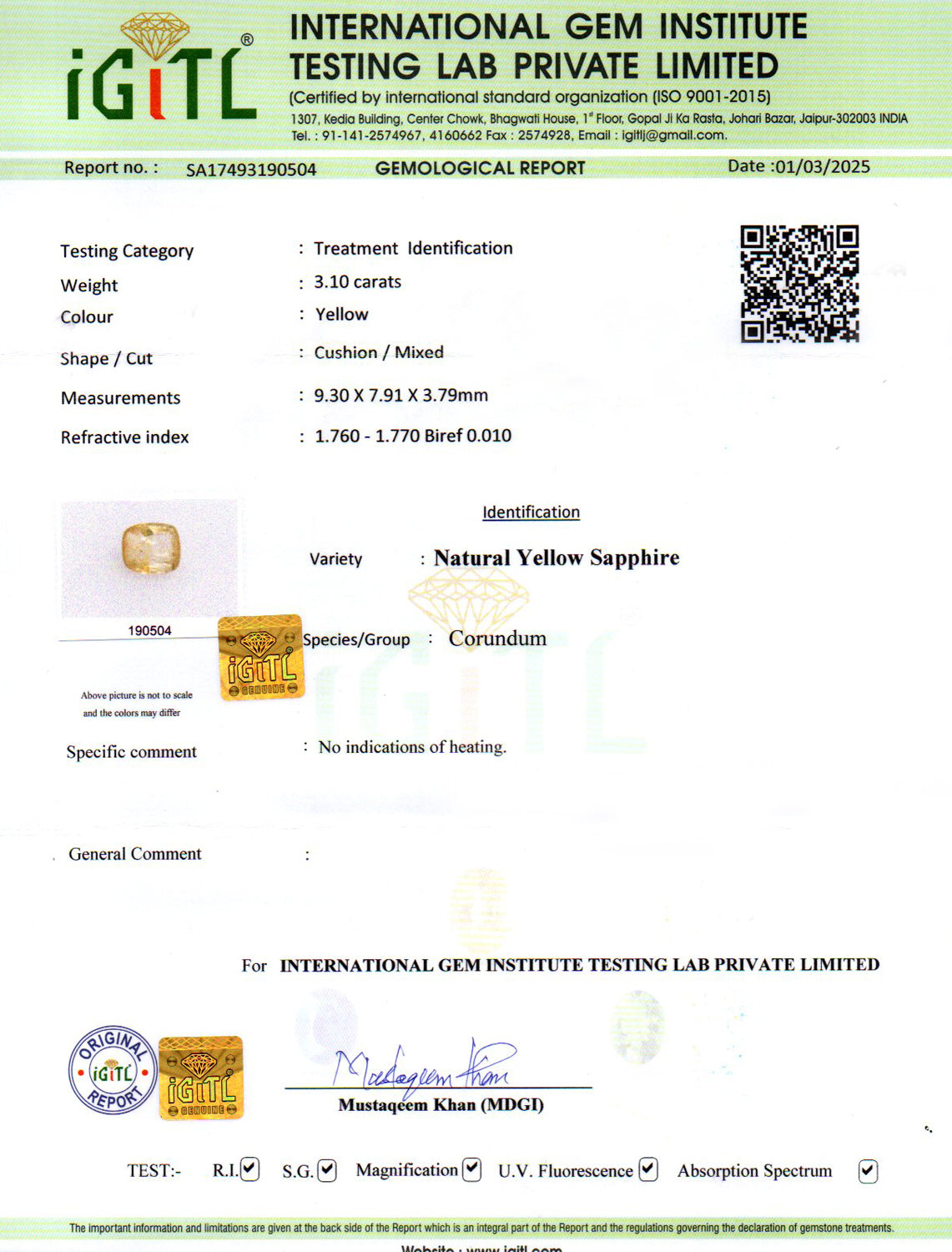 | Weight | 3.10 carat / 3.38 Ratti / 0.62 grams |