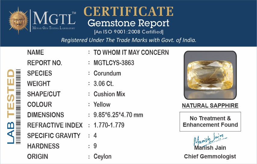 | Gemstone | Yellow Sapphire (Pukhraj) |
