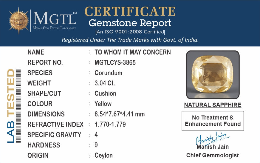 | Gemstone | Yellow Sapphire (Pukhraj) |