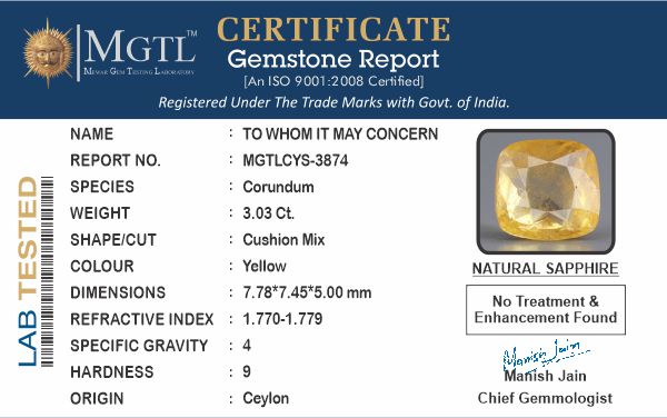 | Gemstone | Yellow Sapphire (Pukhraj) |