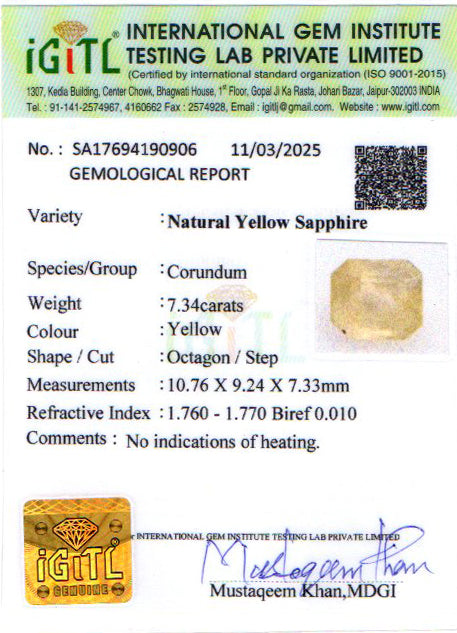 | Weight | 7.34 carat / 8.00 Ratti / 1.47 grams |