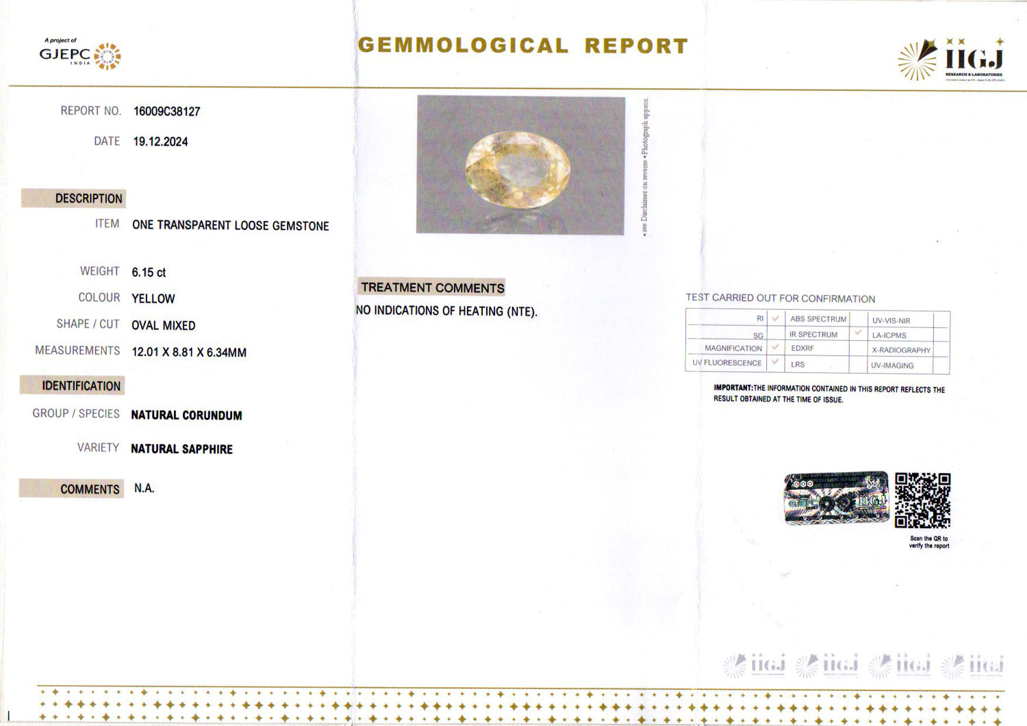 | Weight | 6.15 carat / 6.70 Ratti / 1.23 grams |