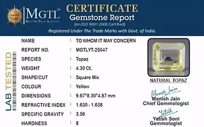 | Gemstone | Yellow Topaz - (येलो टोपाज) |